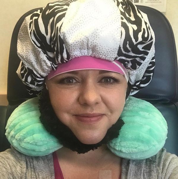"I found out I had Breast Cancer in December 2017. At one of my first appointments the Surgeon that I saw mentioned cold caps. I immediately starting doing some research while waiting to find out what my course of treatment would be. I had 2 lumpectomies and after the 2nd one failed to get everything and also finding out that I had a high oncotype score chemo was recommended. I found the Warrior Caps website and liked everything that I read. My high school mascot is a Warrior so that spoke to me and it felt like it was mean to be. I immediately emailed Lisa and within five minutes she responded back. We had a phone conversation and I was sold and ready to get going. I started 4 rounds of TC chemo on 1/25/18 and just finished up on 3/29/18. Lisa has been an absolute angel and every time I called, texted or emailed I knew she would immediately get back to me. I had the most amazing group of girlfriends and a loving boyfriend surrounding me and they embraced the cold caps and everything about the process. I would say maybe I have lost 25% to 30% of my hair but have managed to keep it looking quite good with the help of sponge rollers and bobby pins! I followed all of Lisa's 10 commandments and am planning to do so for quite a while. The only people in my office that know I have cancer are the ones that I have told and I doubt anyone else would have a clue. The process of chemo and using the cold caps is definitely a challenge but it is 100% worth the effort if you want to keep the majority of your hair. I'm ready to get on to the next phase of my treatment with surgery next month and happy to know that I am going forward as Warrior With Hair! Thanks soooooo much Lisa...you are the best!