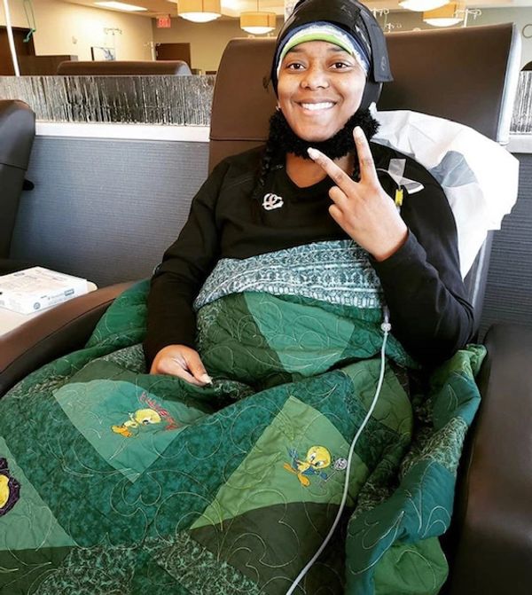 "I'm beyond grateful for Warrior Caps. While doing six rounds of chemotherapy I was able to keep my hair."